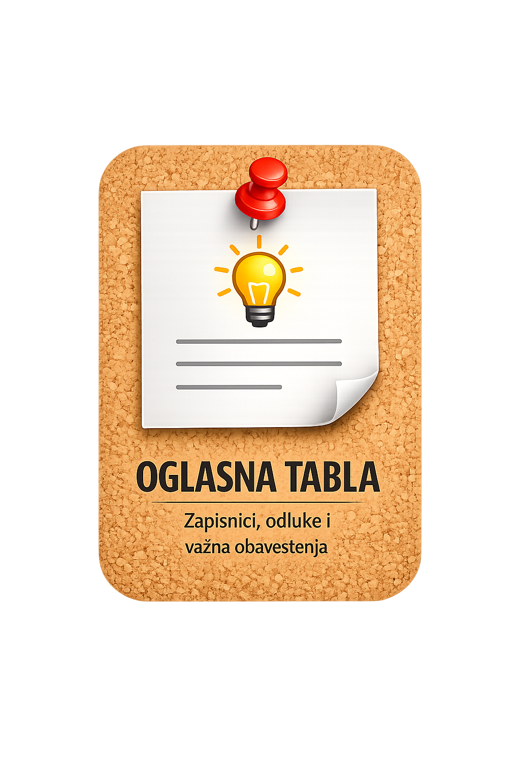 - Oglasna tabla: Ovde ćemo kačiti zapisnike sa sastanaka, odluke skupštine stanara i obaveštenja o radovima.